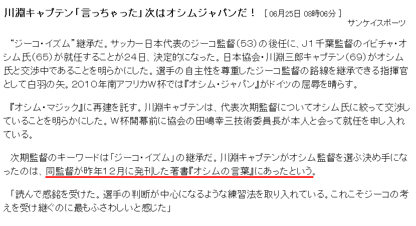 サンケイスポーツさん。「オシムの言葉」は、オシム自身の著書ではありませんよ。ちゃんと勉強しましょう。