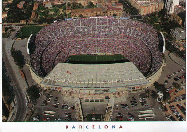 そんな彼から手紙が届きました。スペインで買った絵はがきだそうです。今回の写真は、その絵はがきをスキャナで取り込んだもの。もちろんサッカー馬鹿の彼がスペインに行くとしたら、ここに行くだろうという場所ですよね。