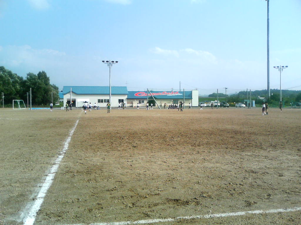 コンサフィールドは、スポンサーである旭川の進藤病院さんが東川町に造ってくれた旭川校専用のサッカー場です。写真は、グラウンドとクラブハウス。青い屋根にあるロゴは、一見Consadoleに見えますが、よく見るとConsafieldと書いてあります。また、Sapporoの代わりにHIGASIKAWAの文字も見えますね。^^;