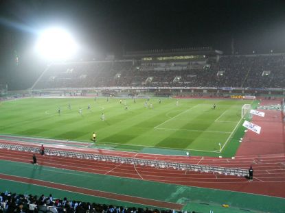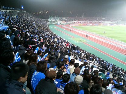 遠藤が決めて、ガンバが勝利。スタジアムを後にする3人。(さらに、つづく)