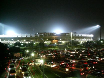 しかし、あとからあとからモノレール駅に殺到するガンバとアントラーズのサポーターたち。巨大な荷物を持つMustanくんが戻るのはすでに不可能な状況。